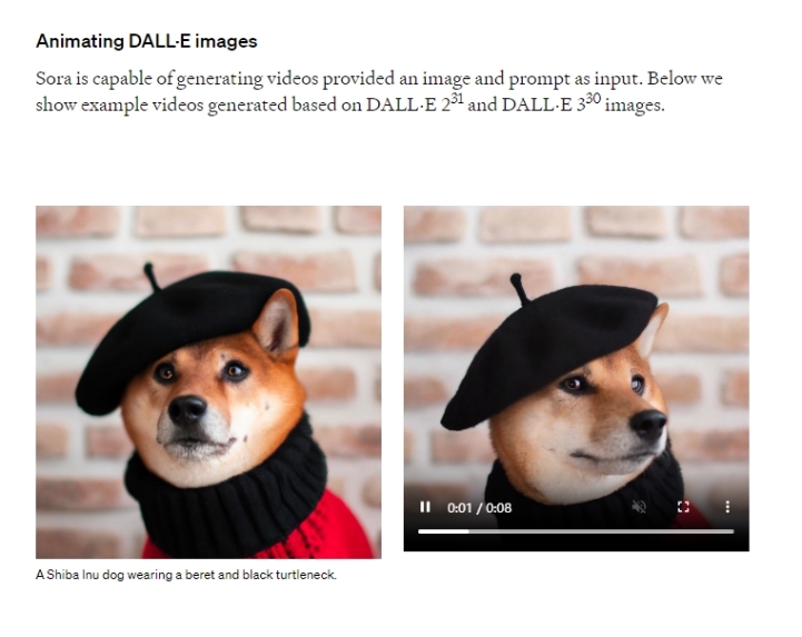 (3)以图/视频生成视频:Sora除了可以将文本转化为视频,还能接受其他类型的输入提示,如已经存在的图像或视频。这使Sora能够执行广泛的图像和视频编辑任务,如创建完美的循环视频、将静态图像转化为动画、向前或向后扩展视频等。OpenAI在报告中展示了基于DALL·E 2和DALL·E 3的图像生成的demo视频。这不仅证明了Sora的强大功能,还展示了它在图像和视频编辑领域的无限潜力。