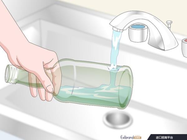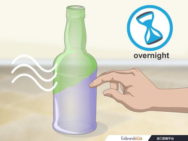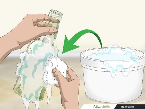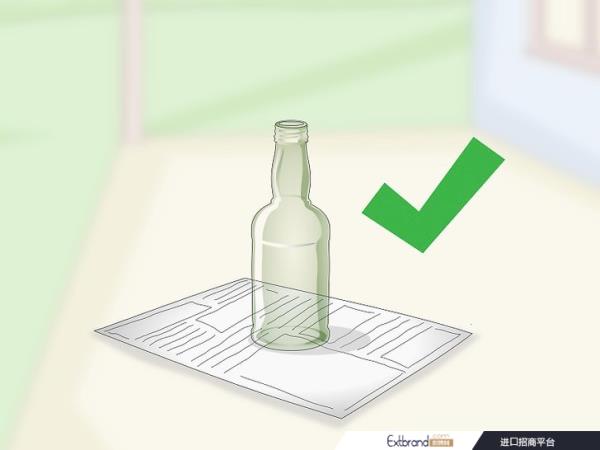 用肥皂和水清洗酒瓶。在肥皂水中浸泡一块抹布,然后擦拭瓶子的外部。将瓶子内部冲洗干净,去除任何残留。清洗完瓶子后,让瓶子完全干燥。