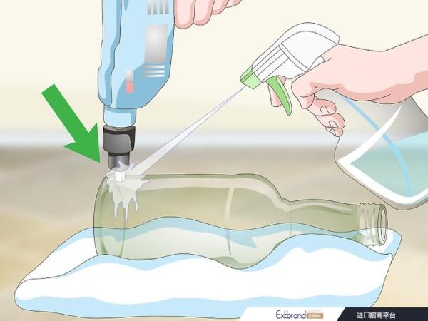 酒瓶的侧面,而不是底部。钻孔时,用喷瓶喷水