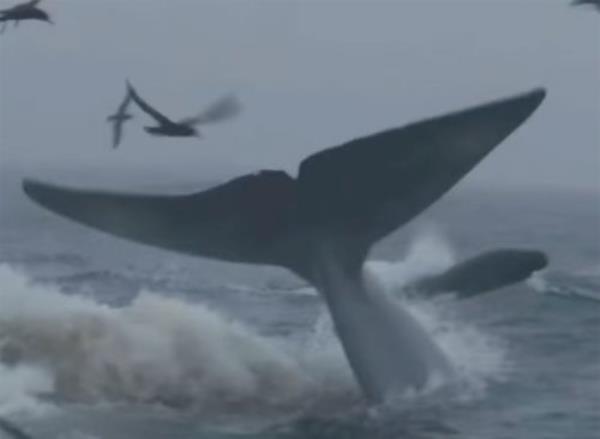研究人员看到的是:十几头虎鲸正在攻击一头成年蓝鲸,这头鲸大约有60到72英尺长。逆戟鲸咬住并猛撞蓝鲸,直到它在大约一个小时后死亡。科学家们表示,这种行为与他们观察到的其他虎鲸攻击大型鲸鱼的行为相似。