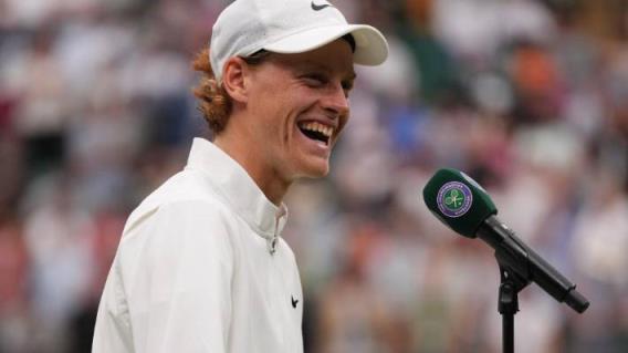 詹尼克·辛纳在赢得四分之一决赛后发表讲话。