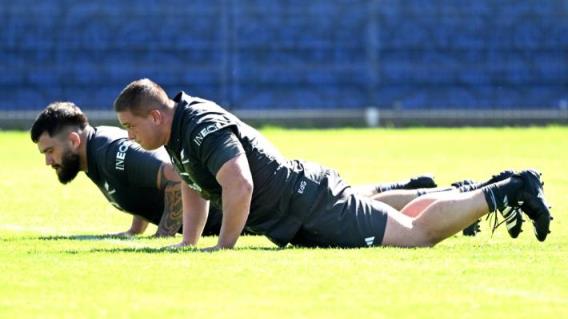 像全黑队这样的大男孩在现代比赛中有很多机会重新加载肺,泰雷尔·洛马克斯(左)和伊森·德格鲁特。