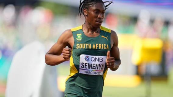 2022年7月20日,在俄勒冈州尤金举行的世界田径锦标赛女子5000米预赛中,来自南非的卡斯特·塞门亚正在比赛。
