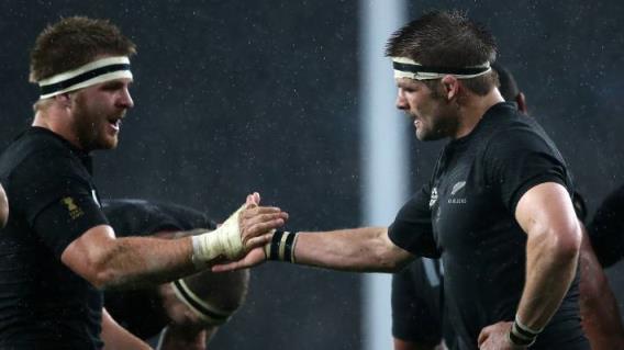 2015年伦敦世界杯半决赛,全黑队击败跳羚队后,山姆·凯恩(左)向里奇·麦考表示祝贺。这是两队在特威克纳姆的最近一次交锋。