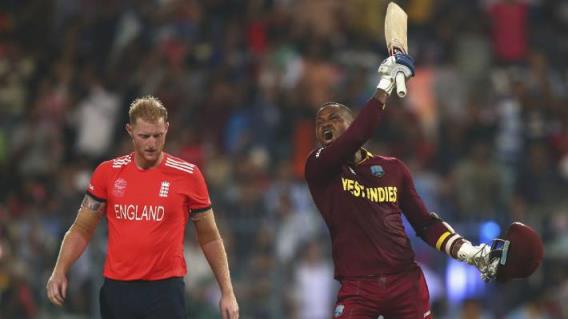 马龙·塞缪尔斯在2016年T20世界杯上帮助风之队夺冠后庆祝。